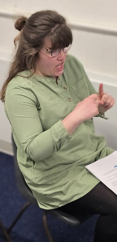 My name is Michelle Raperport‑Smyth, and I am a Deaf British Sign Language (BSL) user whose journey with signing has shaped both my life and my work. BSL is not just a language I teach — it’s my first language, my culture, and the way I connect with the world around me. In fact, I often joke that I was signing before I could walk…and some days, it still feels that way.